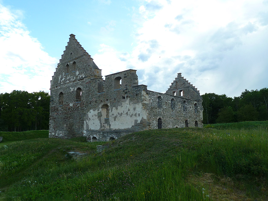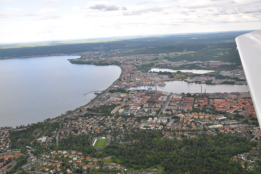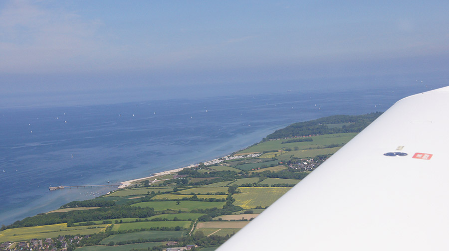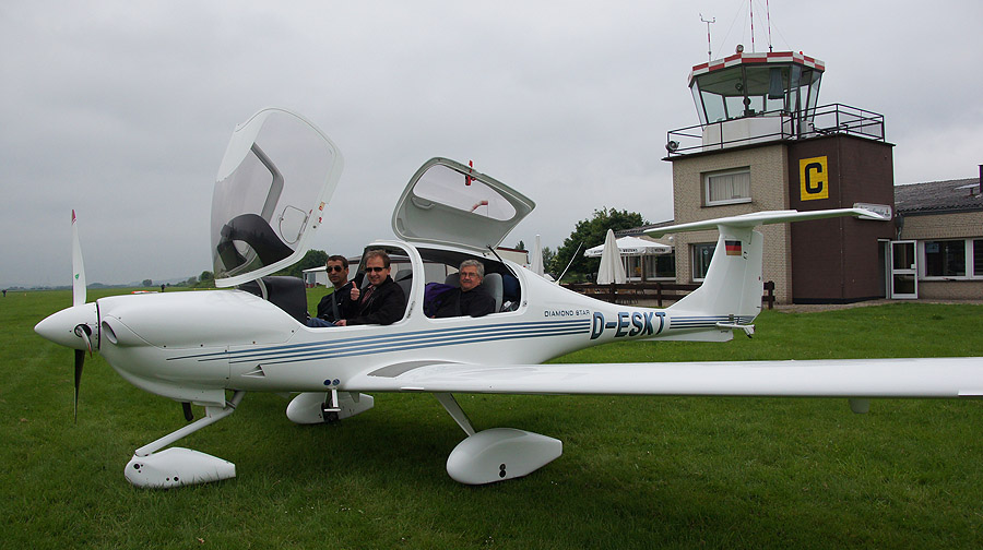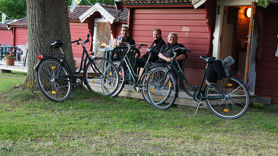 Bei meinen Wochenenddiensten an der BWLV-Motorflugschule habe ich die an der im Flugvorbereitungsraum hängende Europa-Flugkarte oft studiert. Hierbei ist mir der Flugplatz Visingsö im Vättersee in Schweden aufgefallen. Der Flugplatz hat sich als wahrer Geheimtipp rausgestellt. Der Flugplatz befindet sich direkt am nördlichen Inselende und ist nur wenige Schritte von einem Golfplatz entfernt. Die Insel war in den vergangenen Jahrhunderten längere Zeit Regierungssitz der schwedischen Könige. Der Flugleiter von Visingsö hatte kurz vor unserer Landung einem belgischen Fliegerpärchen direkt am Flugplatz ein Quartier organisiert. Uns hat er mit seinem Auto entgeltfrei in die Inselmitte zu einem Ferienpark gebracht. Wir waren dort die einzigen Gäste. Das schwedische Häuschen in Garagengröße hat aber alles Nötige gehabt und war sehr preiswert. Mit dem Flugleiter war vereinbart, dass wir am nächsten Morgen einfach mit drei Fahrrädern eines mit ihm befreundeten Fahrradverleihs zum acht km entfernten Flugplatz zurückfahren können. Die Fahrradräder waren nicht abgeschlossen und frei zugänglich. Also haben wir uns die Fahrräder gleich nach dem Abendbrot ausgeliehen, um dann noch den Fährhafen, die Ruine von Schloss Visingborg, eine historische Stabkirche aus Holz und einen idyllischen Ort mit einem Steg in den westlichen Seeteil ausfindig zu machen. Rinteln Flugplatz Henrik, Dietrich und Klaus-Peter Verden an der Aller Kiel Hafen
