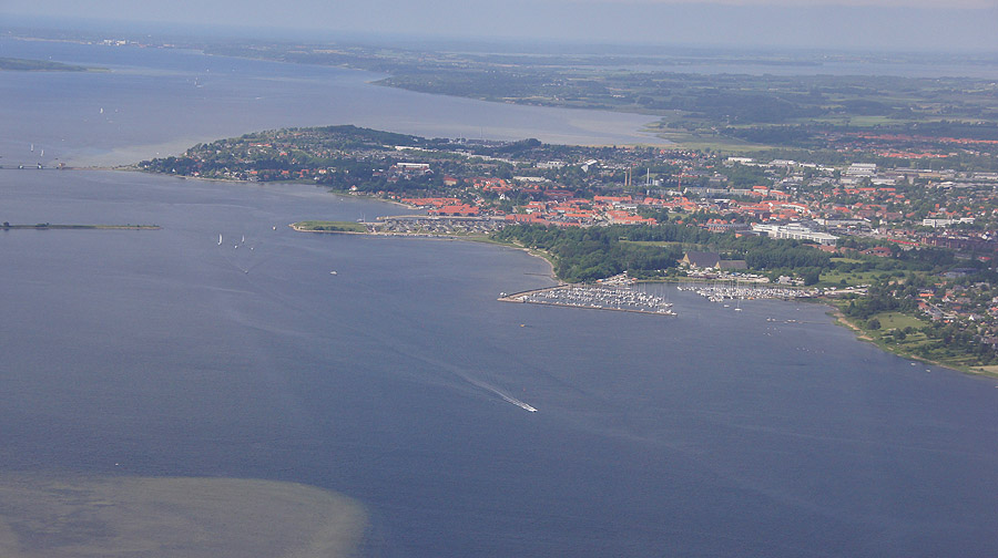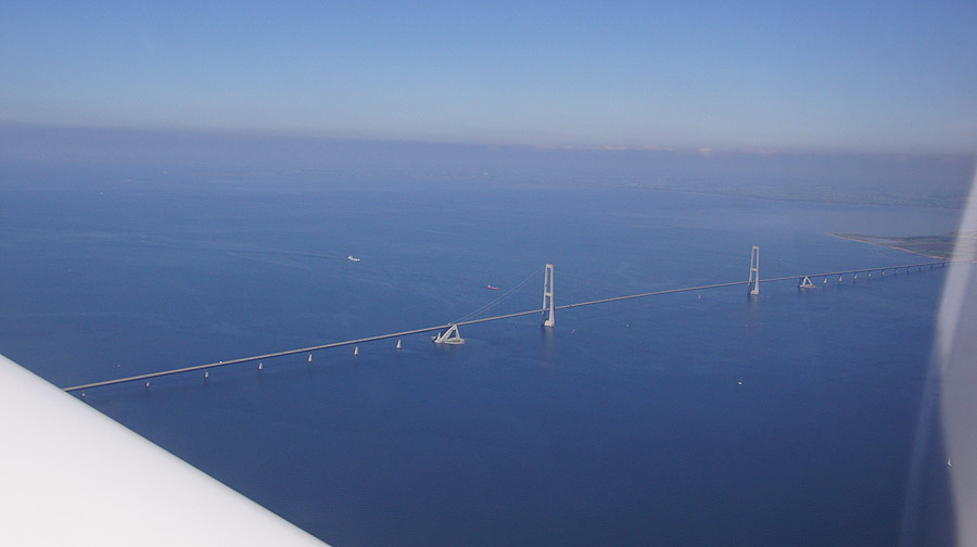 Von Rinteln ging es nach Kiel. Dort wurden wir sehr freundlich empfangen. Nach dem Tanken flogen wir an der im Sommer 1998 eröffneten mautpflichtigen Autobahnbrücke Storebæltsbroen entlang, welche die dänischen Inseln Fünen und Seeland miteinander verbindet. Die Brücke ist Europas längste Hängebrücke und sogar die drittgrößte der Welt. Sehr beindruckend ist die große Hauptspannweite von mehr als 1,6 km Länge.