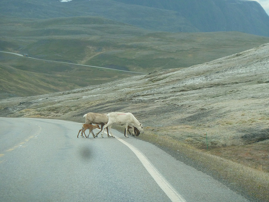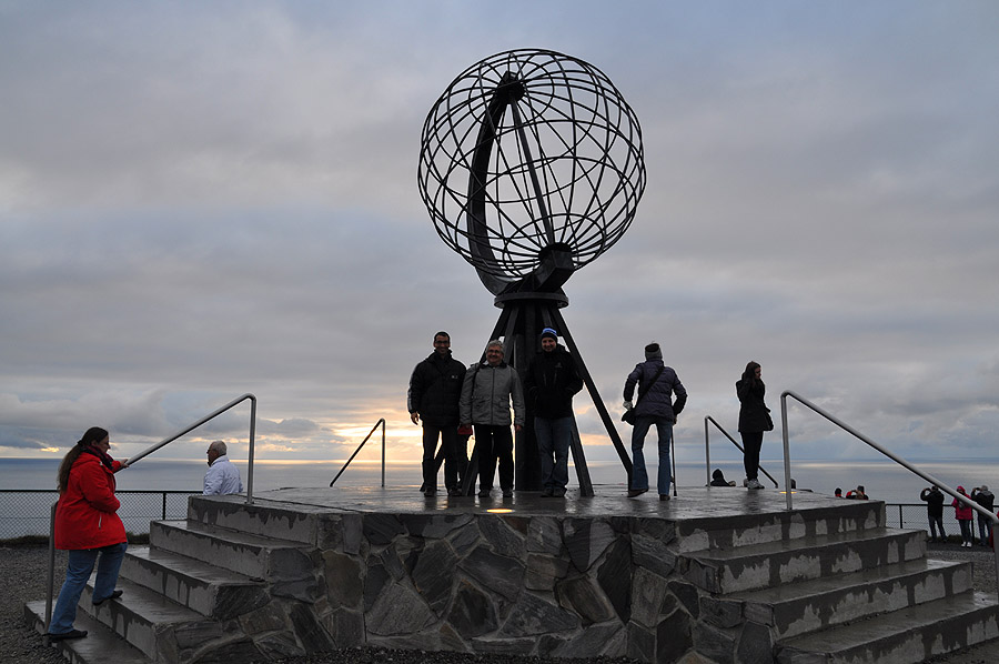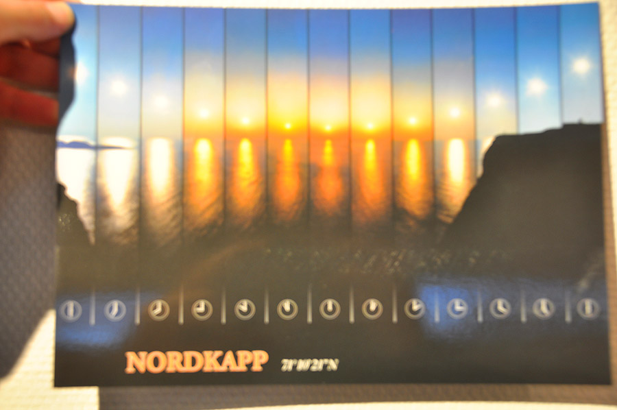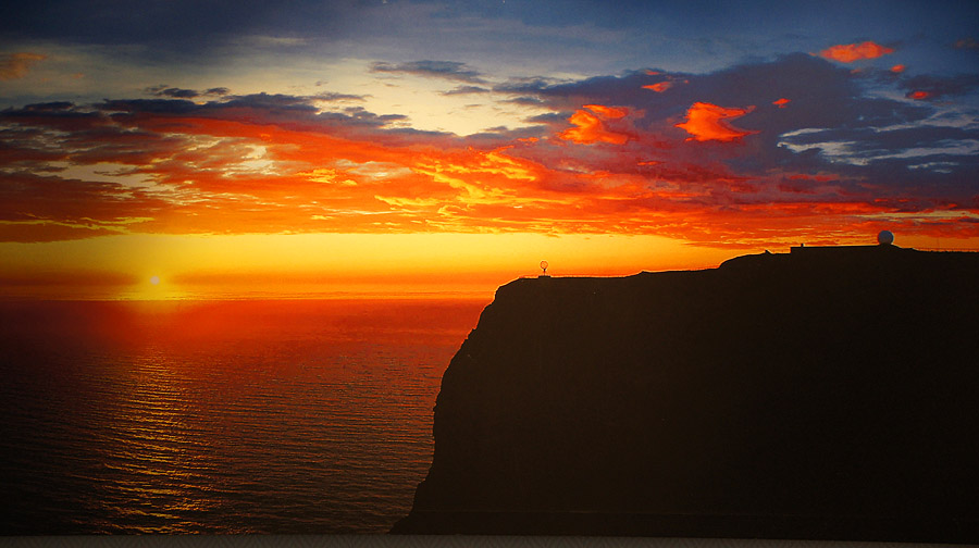 Am Nordkap sind wir mehrmals an dem 307 m hohen Felsplateau vorbeigeflogen und haben Europas nördlichsten Wohnmobilparkplatz mit ca. 50 Wohnmobilen und dem Touristenzentrum fotografiert. Nach der Landung in Honningsvåg ging es mit einem Mietwagen zum Hotel am Hafen, wo wir ein leckeres Abendessen einnahmen. Das Publikum bestand hier nur aus Rentnern. Spät abends haben wir dann noch die ca. 33 km mit dem Auto über die karge Landschaft ans Nordkap zurückgelegt. Unterwegs sind wir zweimal etwas langsamer gefahren. Einmal, um querenden Rentieren die Vorfahrt zu lassen und einmal, um einer jungen Australierin noch eine Mitfahrgelegenheit ans Nordkap anzubieten. Das Nordkap ist ein Felsen wie 200 andere Felsen auch, die wir unterwegs gesehen haben. Aber es war natürlich für uns genauso wie für hunderte von Wohnmobilfahrern und Tausende von Hurtigruten Kreuzfahrern wichtig, einmal hier gewesen zu sein. Im Touristenzentrum am Nordkap gab es eine interessante Ausstellung zu den Seeschlachten im zweiten Weltkrieg in den Jahren 1942 und 1943 im Nordmeer. Deutsche Streitkräfte attackierten die britischen Nordmeergeleitzüge in den Gewässern um die Bäreninsel nördlich des Nordkaps. Auch hier hat die Zahl von mehr als 6.000 gefallenen Seeleuten auf beiden Seiten der Kriegsparteien auf uns Eindruck gemacht.