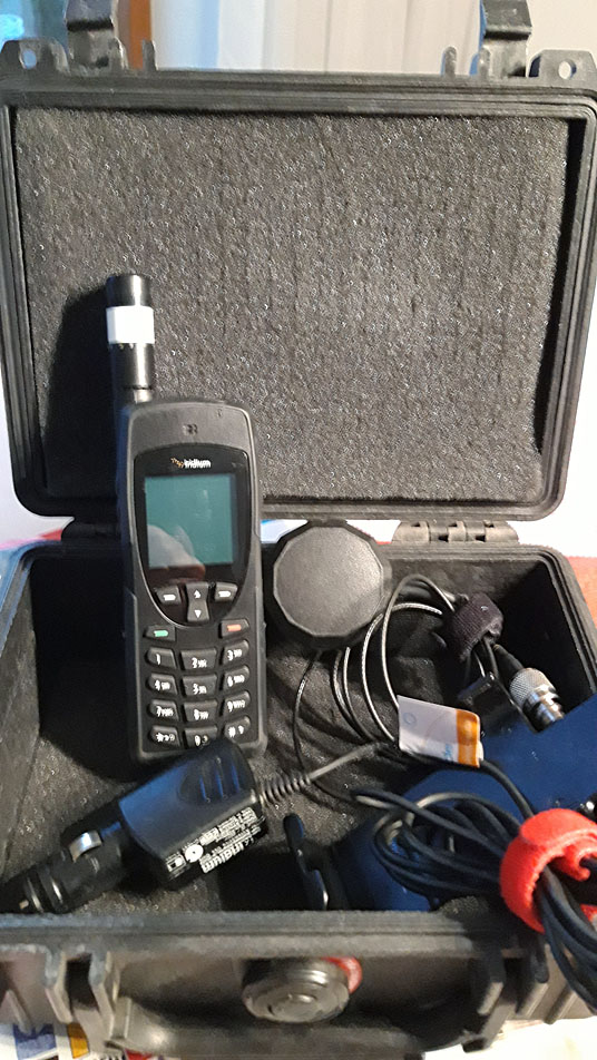Für den Fall, dass wir auf der Strecke keinen Funkkontakt haben und auch kein Airliner auf der 121.5 oder der Quasselfrequenz eine Relais-Übertragung machen kann, haben wir uns ein Iridiumtelefon gemietet. Das hat sehr gut funktioniert. Die Kontaktaufnahme mit Expeditionstechnik Därr GmbH in Müchen (www.expeditionstechnik.de) habe ich über deren Internetseite gemacht. Mietvertrag ausfüllen, unterschreiben, Kreditkarte angeben und schon kommt zum gewünschten Termin das Telefon geliefert. Auspacken, einschalten, telefonieren. Genau so wie man es will. Keep it simple.