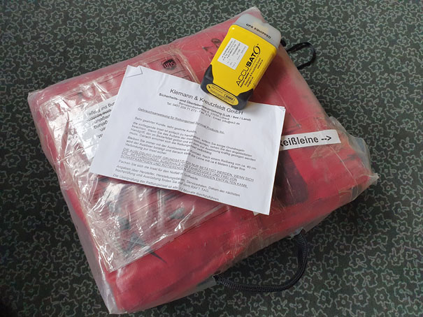 Da wir auf dem Weg nach Schottland eine beachtliche Strecke über der Nordsee fliegen werden benötigen wir die gesamte Seenotrettungsausrüstung schon beim Abflug und können nicht erst bei Far North Aviation in Wick die Ausrüstung mieten. Gestern ist dann das Paket mit der Rettungsinsel und den PLB's bei mir eingetroffen. Alle sauber verpackt. Man hat den Eindruck, dass Herr Kreutzfeld das öfters macht.