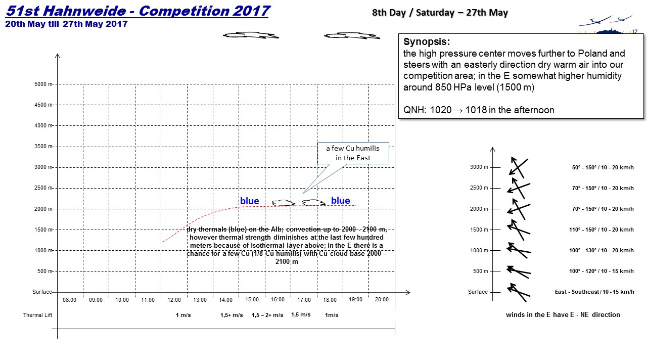 Zum Wetter: Unser Wettbewerbsraum steht weiterhin unter Hochdruckeinfluss. Es wird auch heute wieder ein trockener Tag mit Blauthermik, im Osten hoffen wir auf vereinzelte Cumuluswolken.