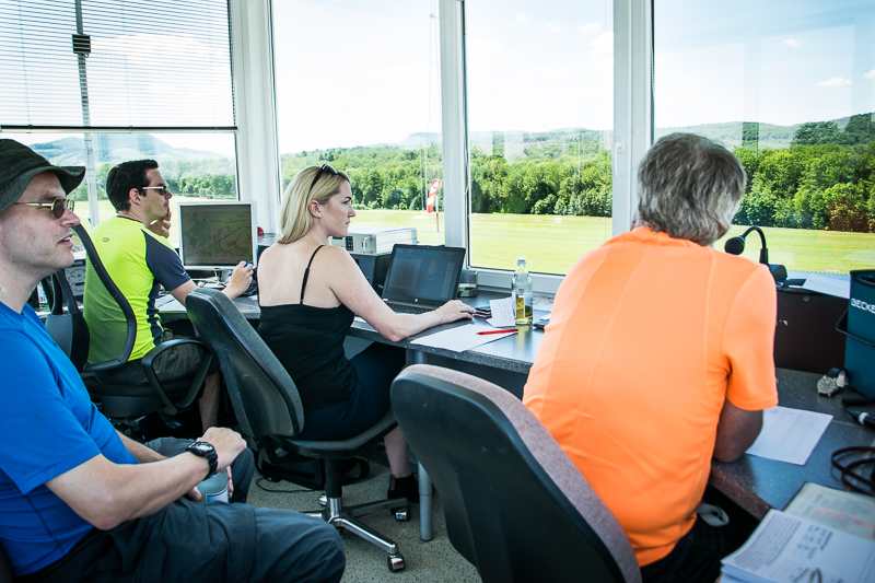 v.l.n.r.: Klaus-Dieter Schönborn + Claus Zeumer (Scoring), Laura Maciej (Organisation + Wettbewerbsbüro), sowie unser Flugleiter, der ebenfalls Klaus heisst.