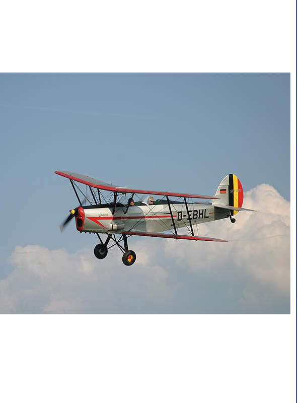 Die Stampe wurde 1946 mit der WerkNr. 216 von SNCAN in Frankreich für die frz. Luftwaffe gebaut und 1981 ausgemustert. Sie kam dann 1982 nach Deutschland, wurde als D-EBHL zugelassen und war in dieser Zeit auf dem Flgplz. Stahringen am Bodensee beheimatet. In den Jahren 1982 u. 83 kam es zu zwei Triebwerksausfällen jeweils in der Startphase, die mit Beschädigungen des Flugzeuges endeten.Nach der Instandsetzung erfolgte die Wiederzulassung im Nov.1984. Die D-EBHL wurde dann 1992 an die Haltergemeinschaft in verkauft, von der sie bis heute am Kehler Flugplatz gepflegt und geflogen wird