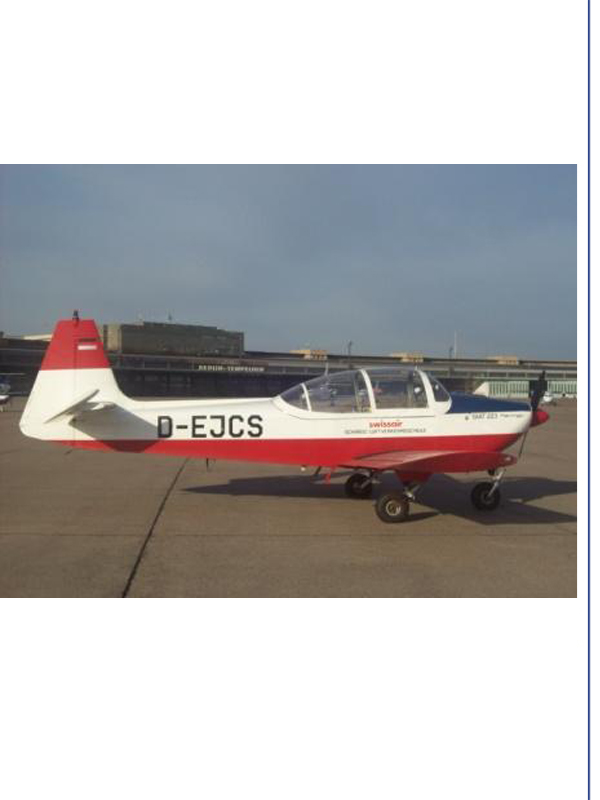 ex. Trainer der Schweizerischen Luftfahrtschule, SLS, Swissair.Gebaut in Laupheim (MBB). Es sind noch 8 Flugzeuge dieses Typs lufttüchtig.
