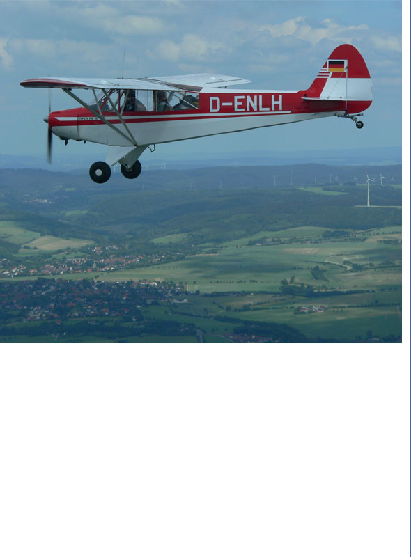Triebwerk muß von Hand angerissen werden, da kein Starter eingebaut ist. Je zwei 68 l Tanks = 7 Stunden Flugzeit.