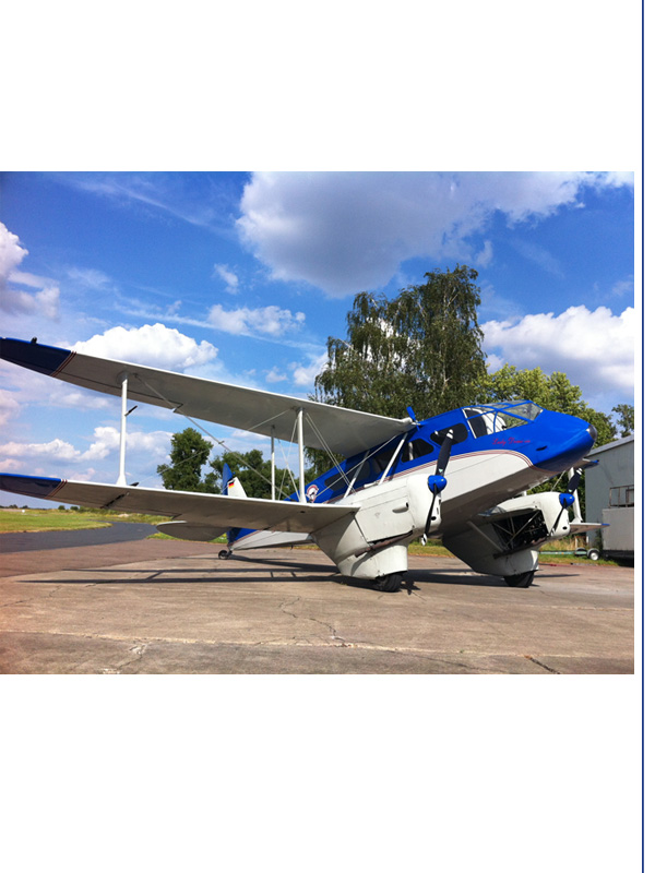 Ursprünglich als achtsitzige Transportmaschine, wurde die DH89 seit 1934gebaut. Die \\\"Dragon Six\\\", wie sie genannt wurde, war schnell ein weltweiterErfolg. Hunderte dieser Maschinen flogen bei kleineren Airlines, während dieRoyal Air Force den Typ als \\\"Dominie\\\" für Funk- und Navigationstraining sowieleichte Transportaufgaben einsetzte.Ab 1943 waren die De Havilland Werke so überlastet, dass die Produktion der\\\"Dominie\\\" und \\\"Dragon Rapide\\\" ab diesem Zeitpunkt von \\\"Brush Electrical\\\" inLoughborough übernommen wurde.Nach dem Zweiten Weltkrieg wurde die \\\"Rapide\\\" das Arbeitspferd vielerFluggesellschaften, in denen sie nicht nur in England sondern weltweit zumEinsatz kam. Insgesamt wurden 728 Maschinen dieses Typs gebaut, wovon heutenoch etwa 45 existieren dürften. Unsere Rapide wurde 1945 in Lizenz von \\\"Brush Electrical Engineering\\\" als eineder letzten Funktrainer \\\"Dominie II\\\" an die Royal Air Force verkauft. Zweienglische Fluggesellschaften nutzten die G-AMAI ab 1950 alsTransportmaschine, bereits 1951 wurde sie aber an CEPSA mit Sitz in Sabadell,Spanien, verkauft. Dort erhielt sie die Registrierung EC-AGP, flog dort aber bis1952 erstaunlicherweise nur 30 Stunden.Das spanische Luftfahrtmuseum in Cuatros Vientos bei Madrid bekam dieMaschine 1952 geschenkt und danach dort sie bis Gunther Kurfiss, der Betreiberdes Luftfahrtmuseums am Frankfurter Rhein/Main Flughafen sie 1985 übernahm.Sie wurde dort lediglich statisch ausgestellt, jedoch nicht zugelassen. Erst als JosefKoch 1987 das Flugzeug kaufte und zwischen 1993 und 1995 restaurierte, konntesie wieder lufttüchtig erklärt werden. Durch den Umzug nach England auf die Isleof Wight, wurde sie vom Flugplatz Sandown aus, auf Airshows eingesetzt undbekam dadurch wieder ihr altes Originalkennzeichen G-AMAI.Heute ist sie als D-ILIT die einzige flugfähige in Deutschland.