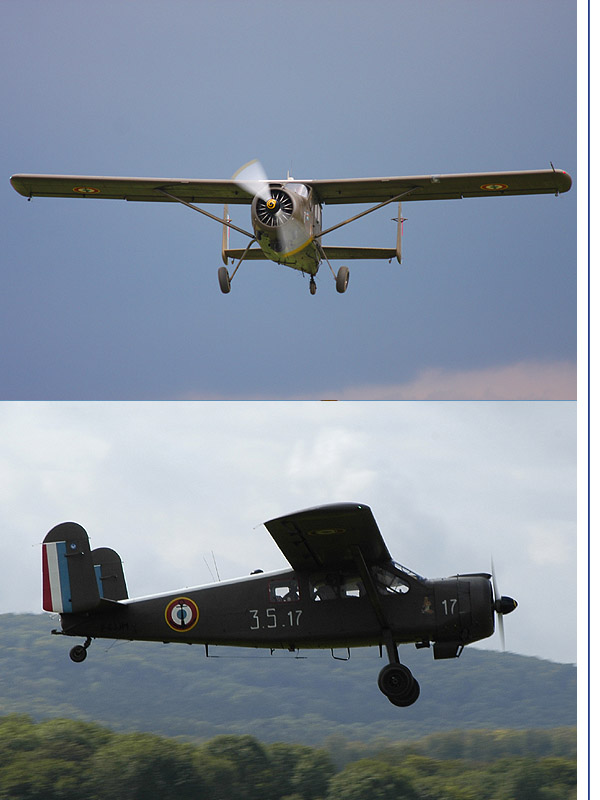 Die Broussard trägt den Spitznamen “französische Beaver”.Mit dieser Bezeichnung soll eine „technische Verwandtschaft“zu der in großen Stückzahlen gebauten kanadischenBeaver hergestellt werden. Die STOL-Eigenschaftenund der Neun-Zylinder Sternmotor würden diesem Anspruchgerecht werden.Trotzdem wurde die Broussard von ihrem KonstrukteurMax Holste als eigenständiges und charaktervolles Flugzeugentwickelt. Das Doppelleitwerk hebt die Broussard schon imersten Augenschein vom bekannten „Flugzeugeinerlei“ ab.Ein Blick in den Innenraum lässt ein großzügiges Platzangeboterkennen. Neben Pilot und Co können, je nach Bestuhlung, biszu vier weitere Personen mitfliegen. Eingesetzt wurdedie Broussard, mit Ihrer außergewöhnlich guten Sicht,vor allem als Aufklärungsflugzeug beim französischen Militär.Dieser Neun-Zylinder Pratt & Withney R-985-AN-1. hat 450 PS.Der Spritverbrauch der gezeigten Broussard beträgt je nachBelastung und Reisegeschwindigkeit zwischen 80 und150 Liter pro Stunde. Aufgrund der STOL-Eigenschaftensind Starts und Landungen auch auf kleineren Flugplätzenmöglich.Die Broussard mit der Kennung F-GIBN wurde im Jahr 1960 gebaut, und flog bis 1986 bei der französischen Luftwaffe als Aufklärer, Transporter, Krankentransporter und Fotoflugzeug. Während des Algerienkrieges wurde sie auch mit Bewaffnung eingesetzt.