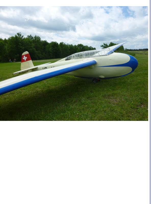 Wir sind sehr glücklich, daß sich Werner und Hugo Roth entschlossen haben, ihren Kranich II, Bj.1938, den sie bis Anfang 2000 in gut dreijähriger Arbeit zusammen mit Hans Rothenbühler (Fips) liebevoll restauriert haben, in die Hände des Fliegenden Museums Hahnweide zu geben. Bei diesem Segler handelt es sich nach unserer Kenntnis um das älteste noch fliegende Exemplar dieses Typs. HB-475 wurde 1938 bei der Fa. Kittelberger in Bregenz im Auftrag des Reichsluftfahrtministeriums (RLM) als Ausbildungsflugzeug für die Luftwaffe gebaut. Der Kranich war dann während des 2. Weltkrieges auf dem Ausbildungssegelflugplatz in Gaissau nahe der Schweizer Grenze stationiert. Mit dem Anrücken der französischen Besatzungstruppen 1945 ins Bodenseegebiet erging von deutscher Seite der Befehl, sämtliche Segelflugzeuge zu zerstören. Bei der Fa. Kittelberger wurde da „ganze“ Arbeit geleistet. Die Flugzeuge im Hangar in Gaissau wurden dabei wohl vergessen. So überlebte HB-475 neben 8 weiteren Kranichen und anderen Flugzeugen das Massaker. In einer abenteuerlichen Nacht- und Nebelaktion gelangten die Flugzeuge dann mit Unterstützung der Franzosen zur Segelfluggruppe Säntis in die Schweiz. Von dort wurden sie auf verschiedene Schweizer Segelflugplätze verteilt. So gelangte HB-475 an den Genfer See. 1960 wurde der Flieger nach Heidenheim verkauft und machte dort 1962 seinen letzten Flug. 1968 kaufte ihn die Segelfluggruppe Schaffhausen. Das Schweizer Luftamt bescheinigte ihm jedoch keine Flugtauglichkeit mehr und so musste der Kranich seinen Leben wenig später als Dekoobjekt (Neck`s Jumbo) in einem Schweizer Autohaus fristen. 1996 konnte Hugo Roth ihn dann nach langen Verhandlungen „freikaufen“.