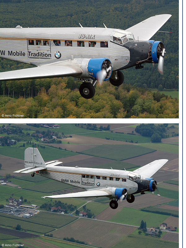 Wir sind stolz, dass unsere vier Ju-52 seit 1997 umweltfreundlich mit bleifreiem Benzin fliegen, viele Stunden Arbeit und Forschung und ein beträchtlicher finanzieller Aufwand stecken dahinter, um die Oldies "grün" zu machen. Der Aufwand hat sich gelohnt, die 9-Zylinder Sternmotoren brummen mindestens so zufrieden bleifrei !