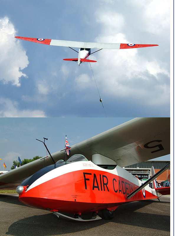 Nach dem Ende des Krieges bestand beim Air Training Corps Bedarf an modernen Trainingsflugzeugen, aber auch private Fliegerclubs benötigten Ausbildungsflugzeuge, und so entwickelte Slingsby zunächst zwei Prototypen eines Segel-Schulflugzeuges; in der einen Version saßen Flugschüler und Fluglehrer nebeneinander, bei der anderen Variante waren die Sitze hintereinander angeordnet. Aus diesen Prototypen entstand die Modellreihe T21; der Serienbau begann 1948. Die T.21b (auch Sedbergh genannt) ist zweisitzig, Sitzanordnung nebeneinander und hat ein offenes Cockpit. Der Erstflug des Prototyps fand im Dezember 1947 statt. Der Listenpreis betrug damals 780 Pfund. Insgesamt wurden von diesem Muster 92 Stück produziert. Das Flugzeug wurde vornehmlich zur Ausbildung der "Air, Sea und Army Cadets" und als fliegendes Ziel eingesetzt, aber auch auf zivilen Segelflugplätzen geflogen. Es ist eine reine mit Baumwollstoff bespannte Holzkonstruktion. Vorne in der Rumpfspitze befindet sich ein Rohr, das im Falle des einsitzigen Flugbetriebes ein Ballastgewicht aufnehmen kann. Die Sitzordnung nebeneinander in einem offenen Cockpit ist im Segelflugzeugbau sehr selten. Wegen des eigenwilligen bootsförmigen Aussehens nennen es die Engländer auch "The Barge (Lastkahn)". Unsere “DAISY“ fanden wir 1994 in Colchester im Südosten Englands. Sie stammt vom Luftwaffenstützpunkt St. Athan am Bristol Channel und war bis 1985 im Einsatz. Wir holten sie bei abenteuerlichem Wetter auf einem offenen Hänger nach good old Germany. Da es damals von den Engländern verboten wurde, den Schriftzug AIR CADETS in Deutschland zu tragen, machte Wolfgang kurzerhand FAIR CADETS daraus. DAISY benötigte etwa 400 Stunden an Schönheitsreparaturen, bis sie von der British Gliding Association das Certificate of Airwportheness bekam. Der selbstgebaute Hänger kostete uns nochmals 2000 Arbeitsstunden.