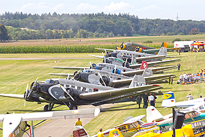 After the breath-taking success of the six-fold Junkers 52-formation we were afraid we couldn't repeat this success story but, contrary to our fears all the four Junkers of JU-Air are operational and will meet on Friday September 6th at about 2:30 p.m. in a formation of five with the LUFTHANSA JU 52. If you want to fly from Dübendorf (CH) to Hahnweide or back then you should hurry up since especially the flights arriving at Hahnweide are almost all booked! Look here on this web site for more information, or just book.
