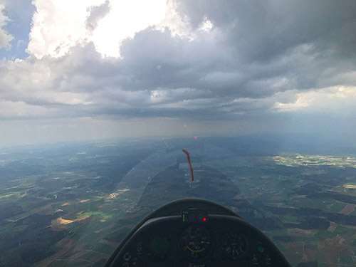 Auch in Runde 8 blieb uns das feuchte, gewittrige Wetter erhalten. Tiefe Basis und schnelle Überentwicklung mit Schauern und Gewitter führte dazu, dass wir nur 2 Flüge am Sonntag in die Wertung bringen konnten. Ein Trostpunkt und weitere 2 Plätze nach unten in der Gesamtwertung auf Platz 15 ist somit unsere Bilanz für das vergangene Wochenende. Hoffen wir auf besseres Wetter in den noch verbleibeibenden 11 Runden.